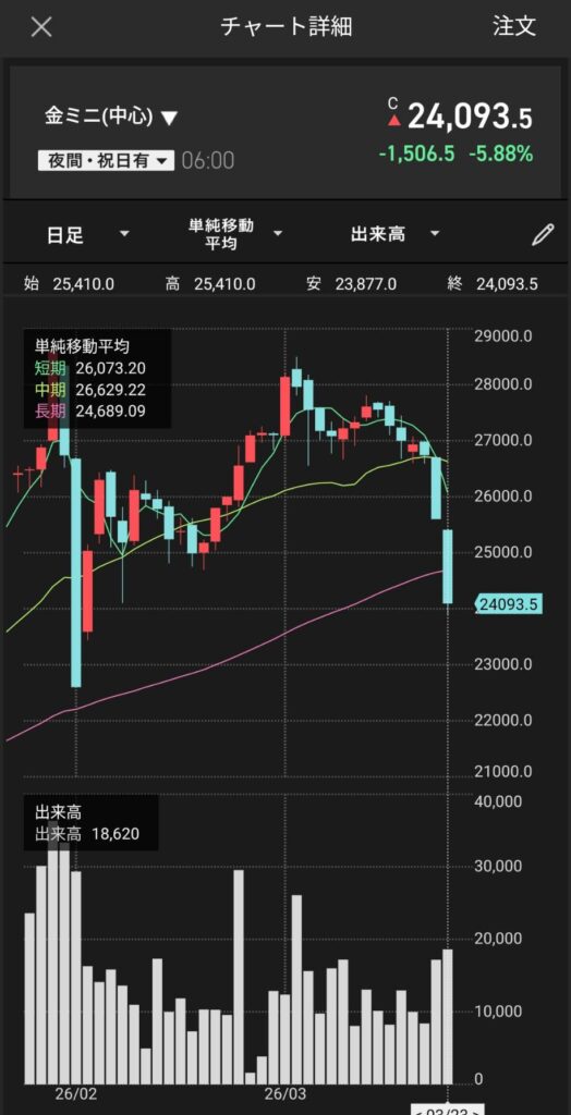 17:00頃 1g15,000円 この時点で損切を決めました。